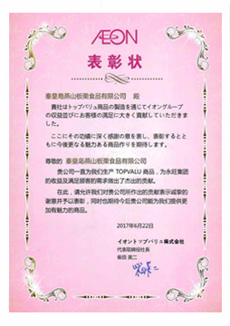 2017年 --→ 被日本亞洲零售商“永旺集團(tuán)”評為食品企業(yè)優(yōu)秀供應(yīng)商。